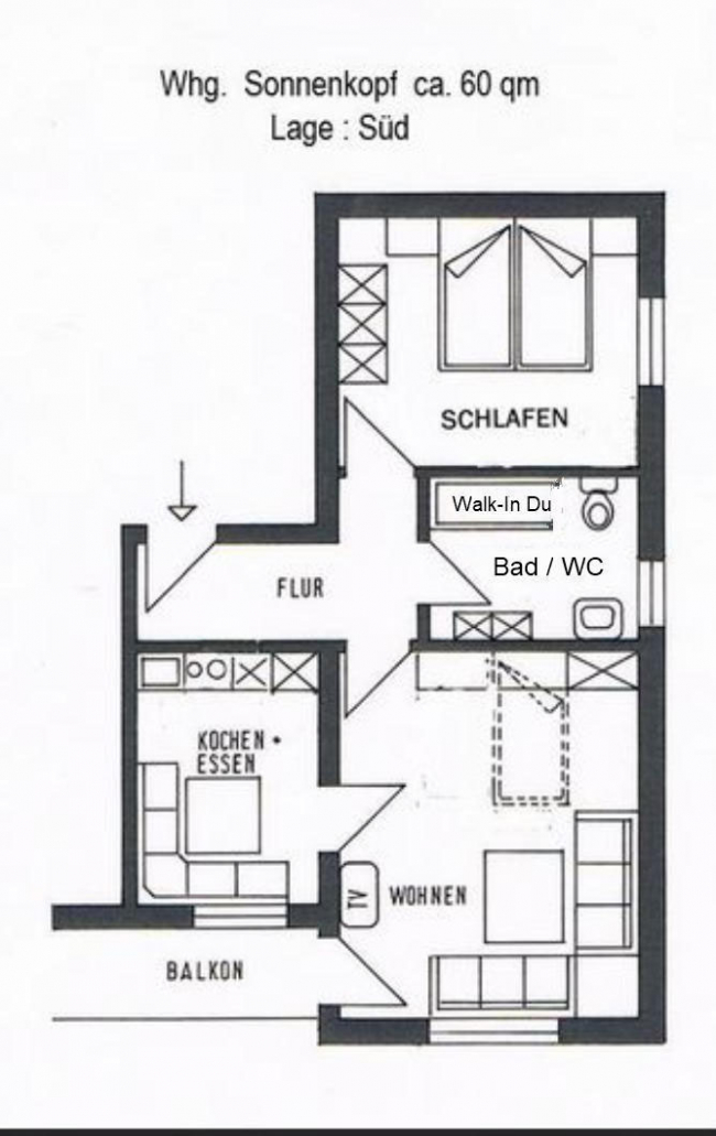 Die Wohnung verfügt über ca. 60 qm und Südbalkon sowie ruhige Lage