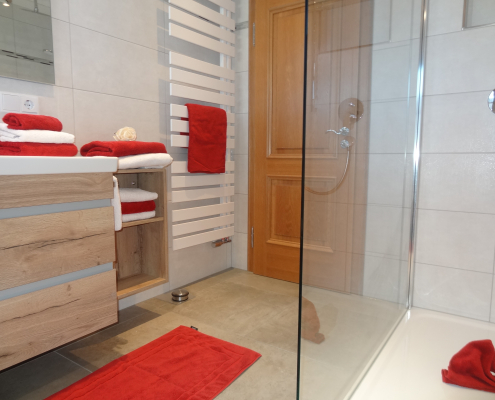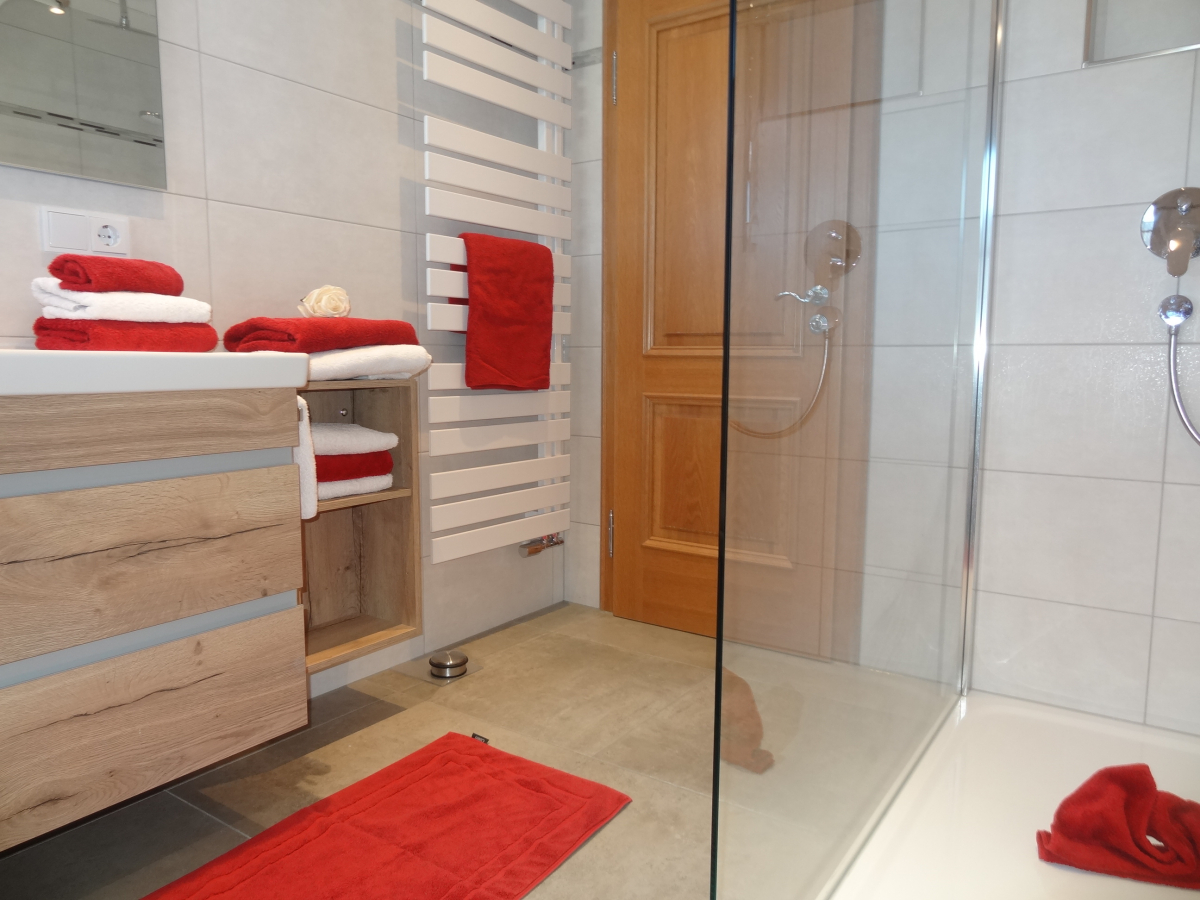 – großes Bad, Walk-In Dusche / WC mit Fenster, Ventilator, Föhn
